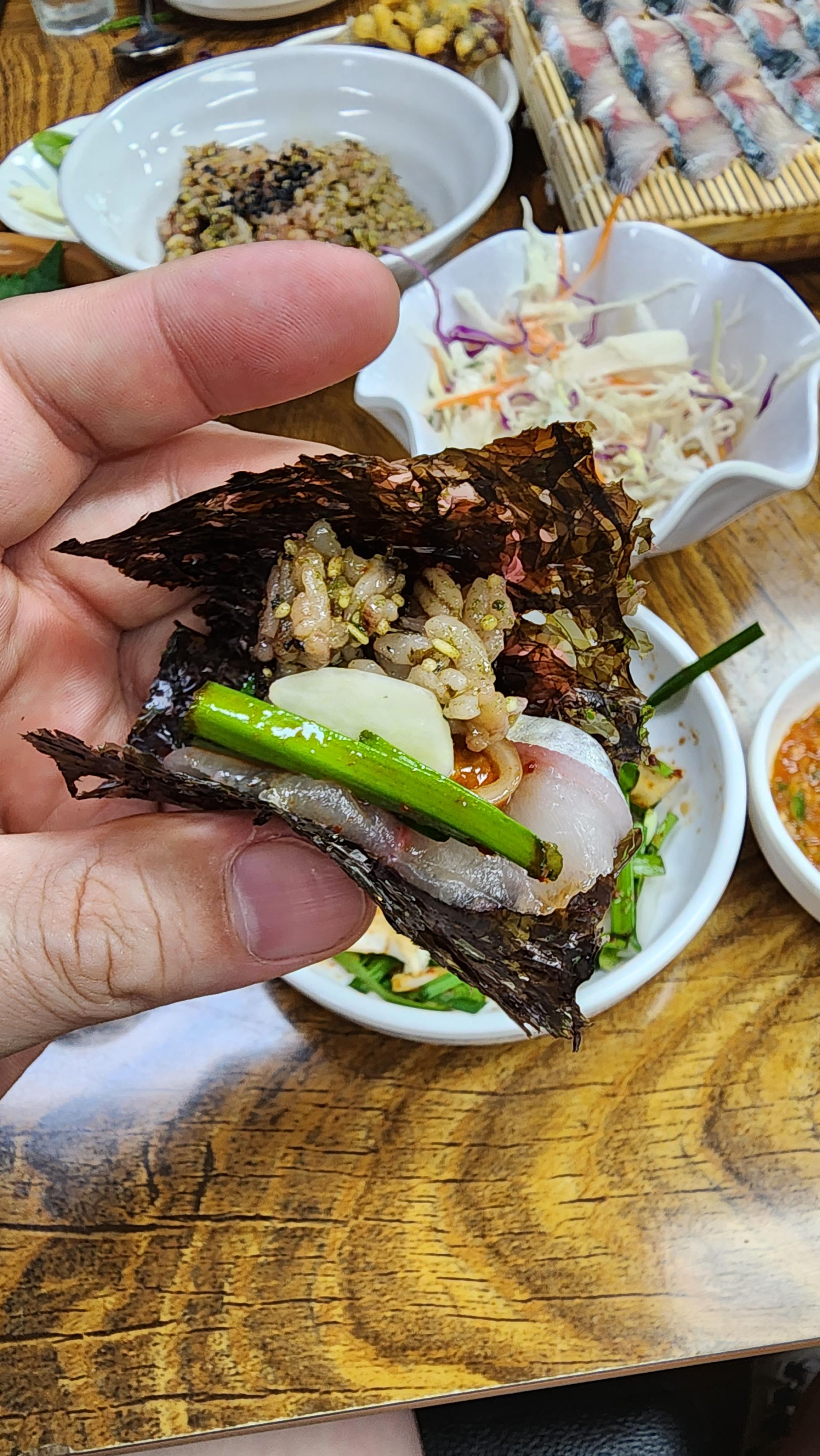 참고로 저는 일반 회는 먹지만 멍게, 해삼 같은 특유의 향이 강한 해산물은 못 먹는데 여기 고등어회는 쌈을 싸 먹지 않아도 전혀 비리지 않았습니다.