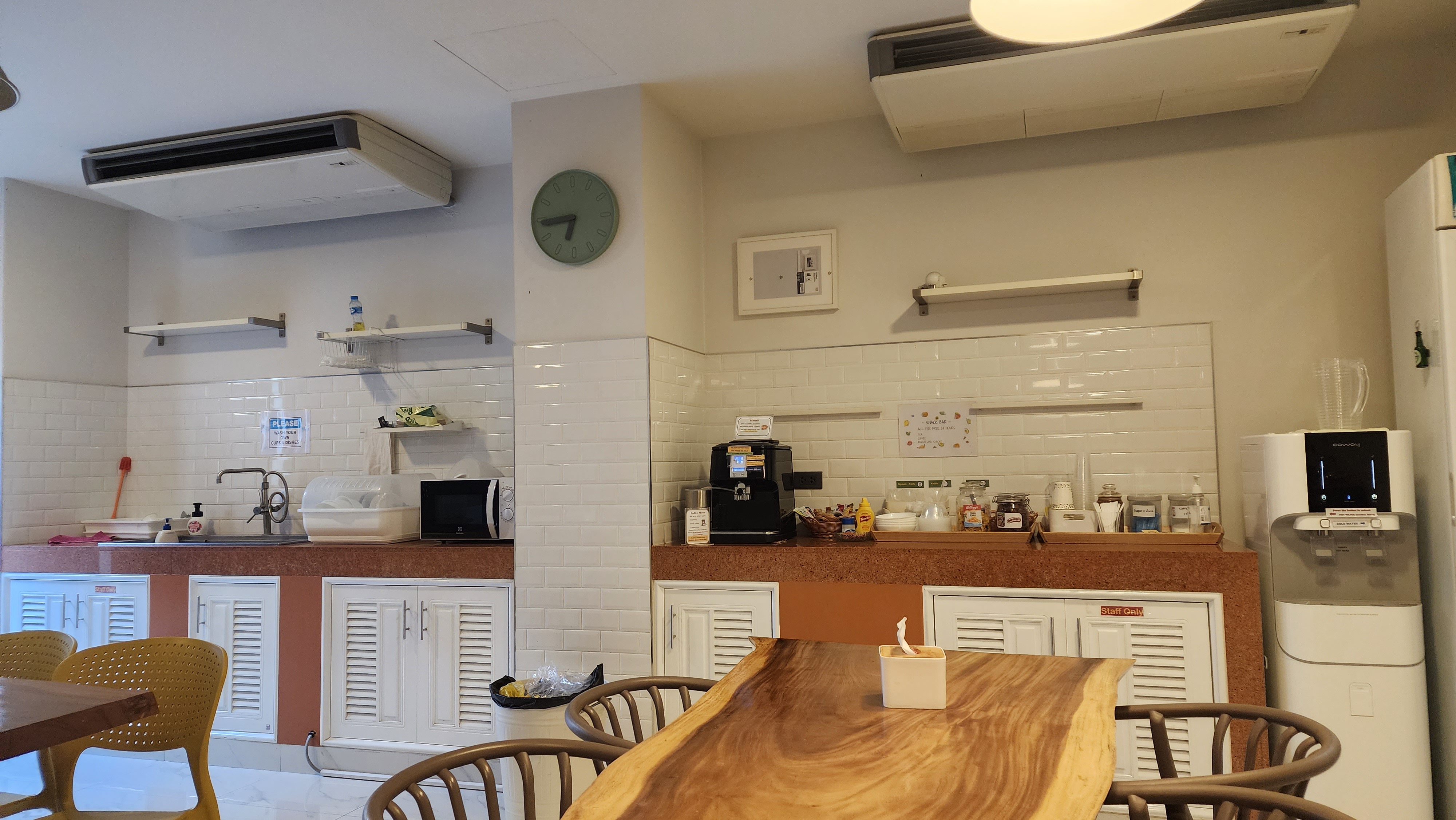 24시간 제공되는 간단한 과자와 주스, 매일 아침 만들어 먹을 수 있는 토스트 등 자유롭게 이용할 수 있는 식당이 큰 장점 이었습니다.